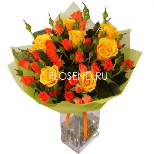 Небольшой аккуратный букет роз. Приехал целым, без оторванных лепестков, все подрезано аккуратно. Приятно пахнет и яркий цвет. Благодарю