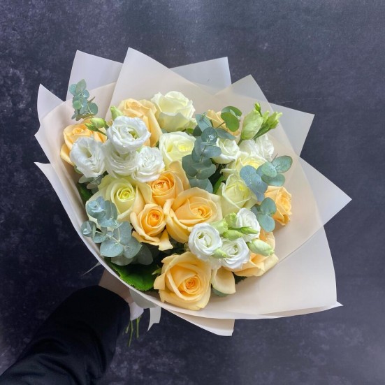 Небольшой аккуратный букет роз. Приехал целым, без оторванных лепестков, все подрезано аккуратно. Приятно пахнет и яркий цвет. Благодарю