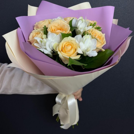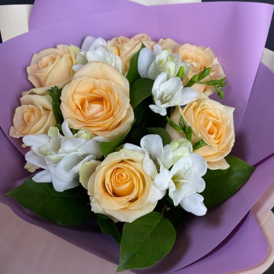 Небольшой аккуратный букет роз. Приехал целым, без оторванных лепестков, все подрезано аккуратно. Приятно пахнет и яркий цвет. Благодарю