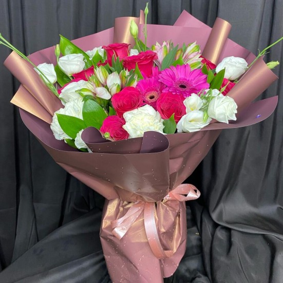 Небольшой аккуратный букет роз. Приехал целым, без оторванных лепестков, все подрезано аккуратно. Приятно пахнет и яркий цвет. Благодарю