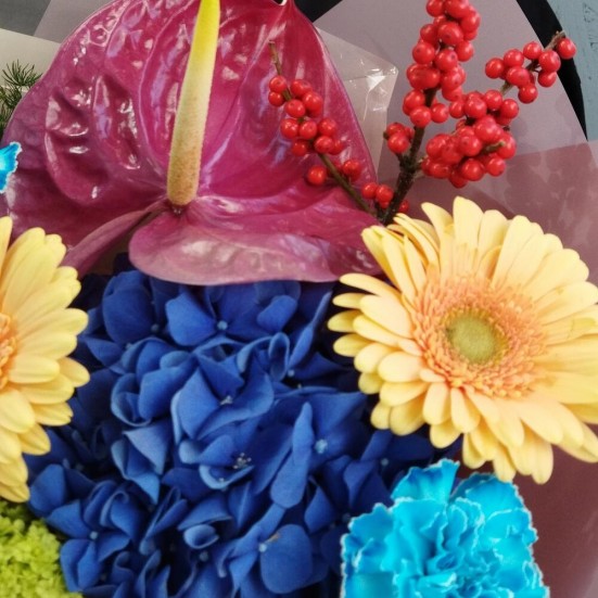 Небольшой аккуратный букет роз. Приехал целым, без оторванных лепестков, все подрезано аккуратно. Приятно пахнет и яркий цвет. Благодарю